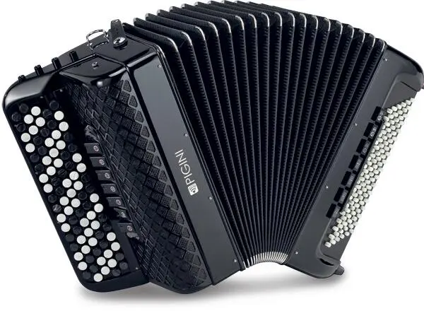Pigini Prestige Junior 5 Reihen 3/4 Stimmen 108 Bässe + 49 in Bariton 7 + 3 + 7 Register schwarz