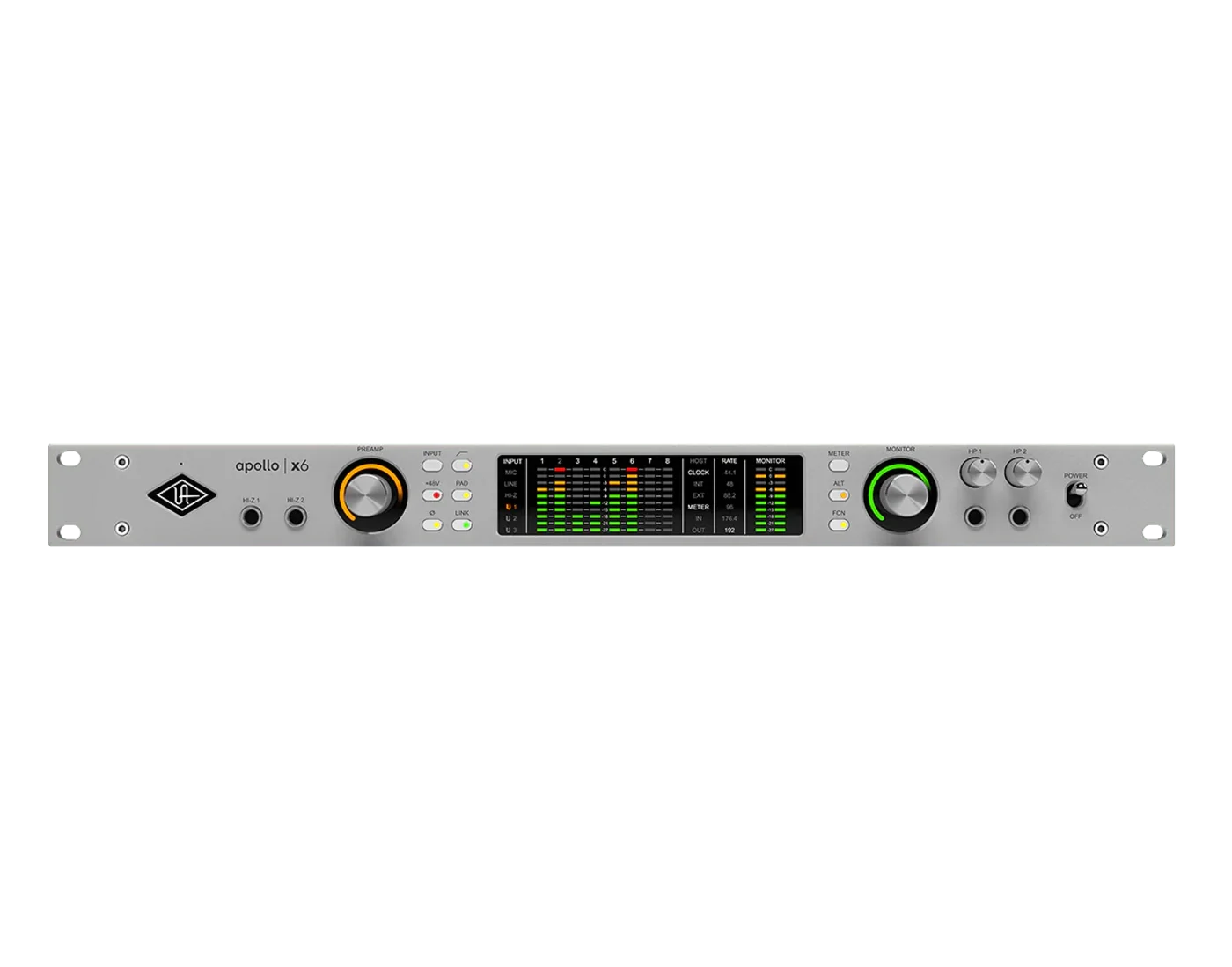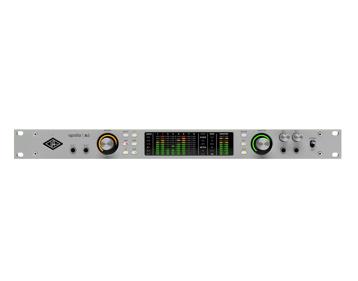 - Apollo X Gen 2-Konverter der Eliteklasse mit einer Auflösung von 24 Bit / 192 kHz, ausgestattet mit Dual-Crystal Clocking für extrem niedrigen Jitter bei allen Abtastfrequenzen