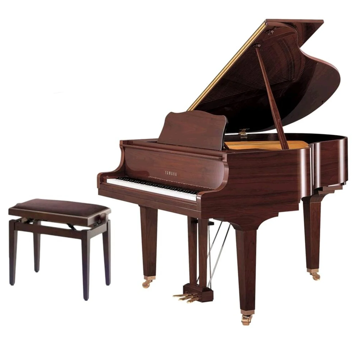 Die Saiten haben einen tiefgreifenden Effekt auf die Klangfarbe und die Haltung des Instruments. Die neuen Yamaha-Saiten erzeugen einen reichen Klang mit einer vollständigen Komplexität von Obertönen in seinen mittleren und oberen Registern.