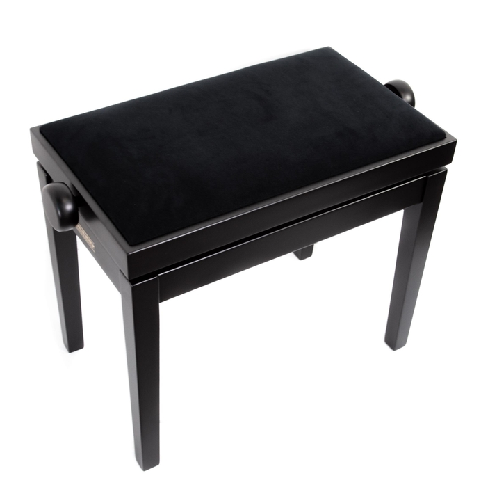 Sehr gutes Preis-Leistungs-Verhältnis für diese Bank aus mit schwarzem Polyester lackiertem Buchenholz mit einer schwarzen Samtplatte, die speziell für Pianisten entwickelt wurde.