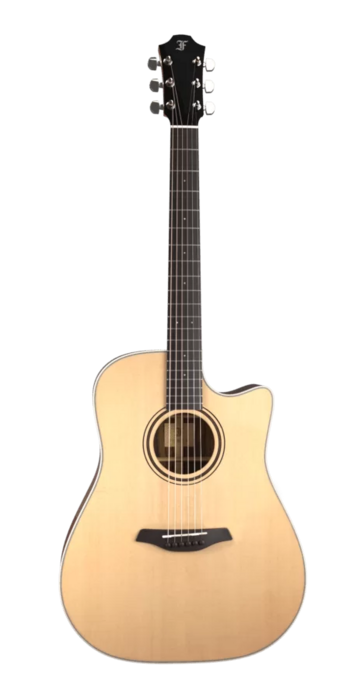 The Green Master's Choice is a prestigious Dreadnought Guitar with Cutaway featuring a Sitka Spruce top, and carefully selected Indian Rosewood back and sides.