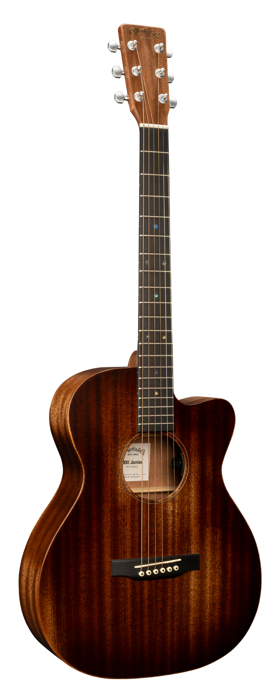 Its 24.9" Scale length and Performing Artist neck profile makes for smooth playing, the slightly beveled fingerboard edge makes it easy to play, and when it's time to plug in, Martin's E1 electronics with built-in tuner will get you that perfect tone.