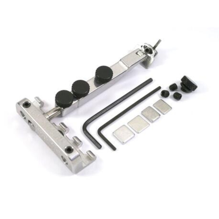 It offers several modes of operation: Complete blocking of the Tremolo for greater stability. Dive Only" mode for dives only. Normal tremolo mode for classic vibrato operation. Type Pin refers to a specific mounting system for installing the Tremol-No. This product is compatible with floating tremolo bridges, such as Floyd Rose, and allows easy installation and better tremolo control while playing.