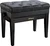 Glossy black piano bench, black faux leather padded top, with partition box.