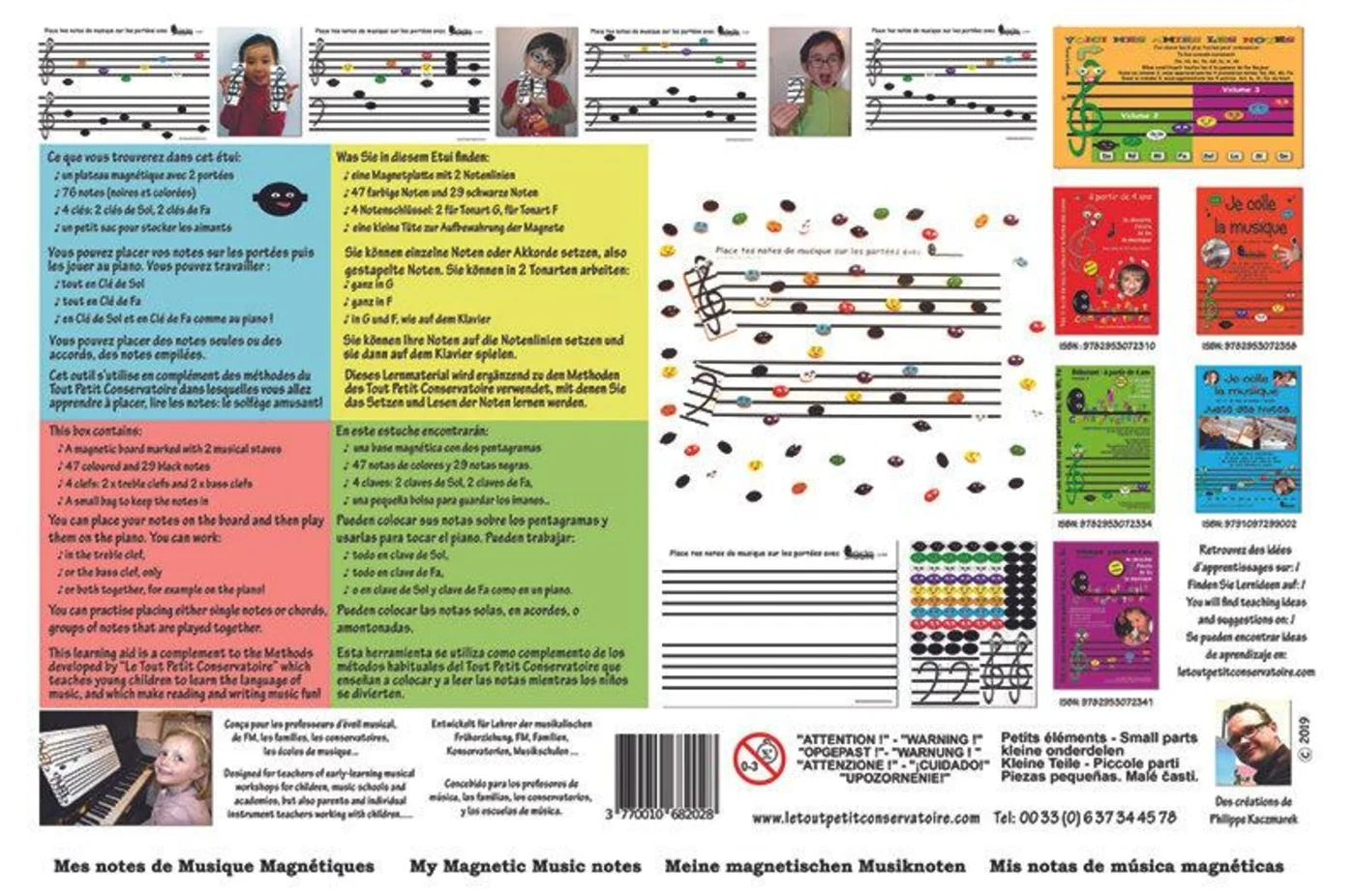 Le Tout Petit Conservatoire Mes notes de musiques magnétiques (plateau à 2 portées, 76 notes, 2 clés de Sol, 2 clés de Fa, sac de