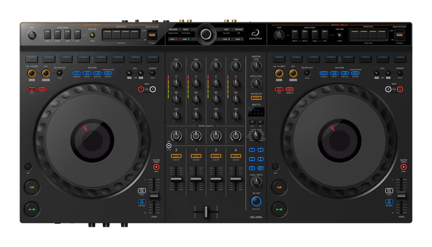 L'AlphaTheta DDJ-GRV6 incarne l'harmonie parfaite entre puissance et fluidité pour les DJ de tous horizons.