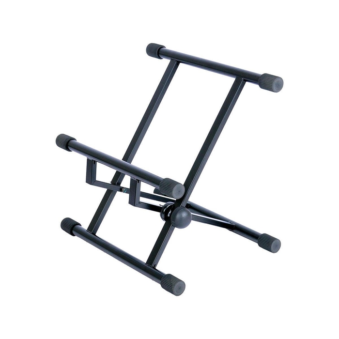 Fabriqué en acier, ce support offre une excellente stabilité. Il est équipé d’un système cranté de sécurité permettant de verrouiller l’inclinaison en toute fiabilité, même avec des amplis lourds.