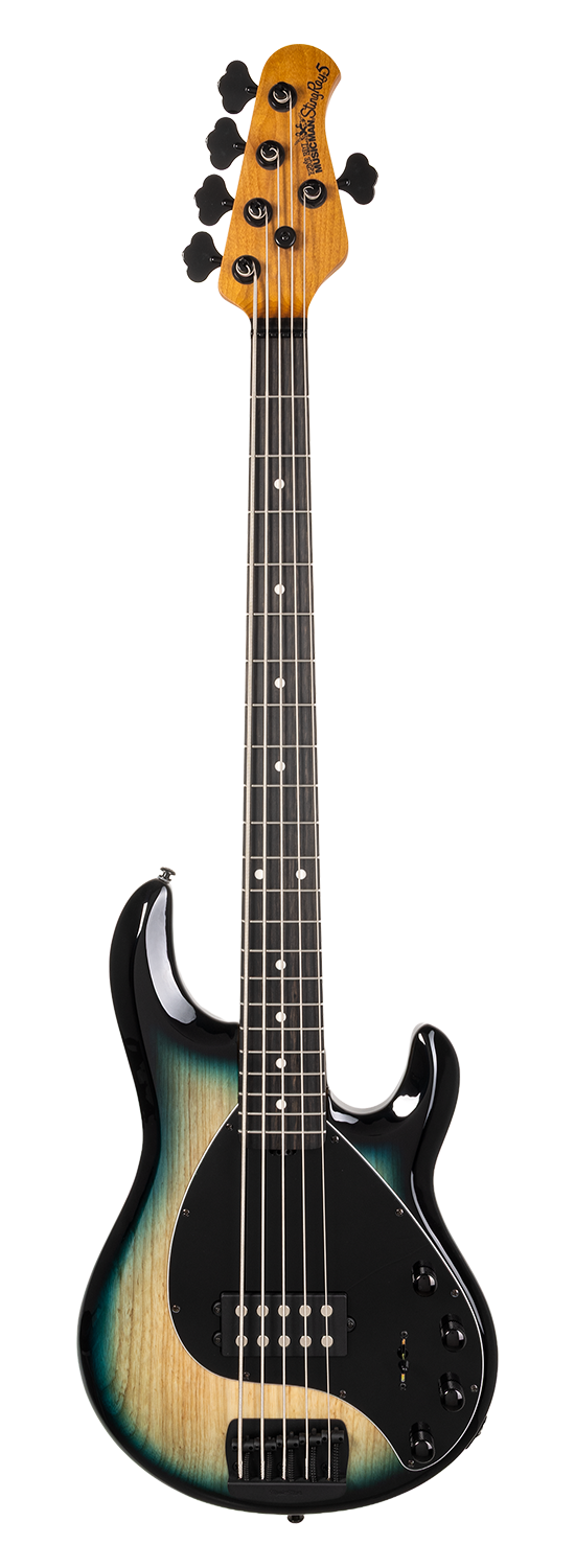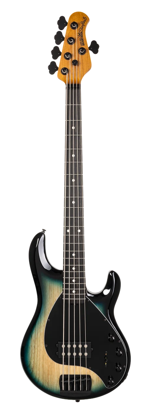 L'emblématique Ernie Ball Music Man StingRay Special 5H dans sa finition Mean Blue Burst est l'un des plus prisés des bassistes.