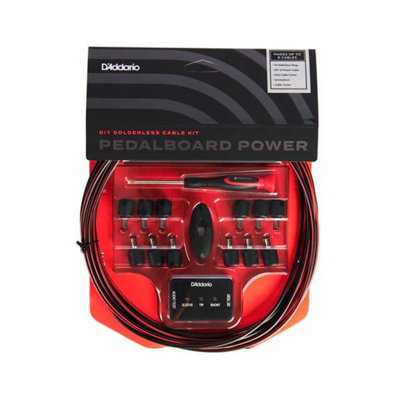 D'Addario DIY Solderless Cable, Kit de câble sans soudure pour alimentation de pédales 6m de cable et 12 fiches droites avec pince