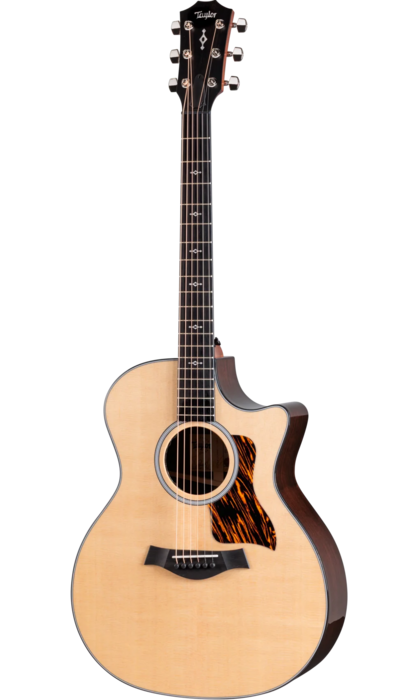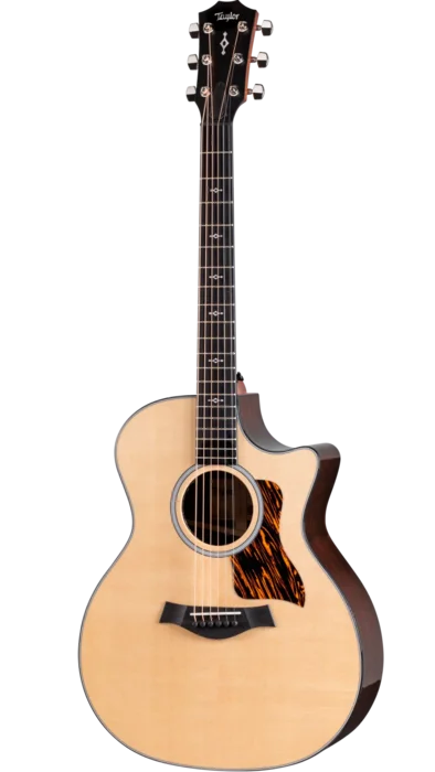 Esthétiquement, la 414ce présente une finition brillante sur le corps, un binding noir, un pickguard firestripe et des mécaniques Taylor nickel. La touche est ornée des nouvelles incrustations Weathervane, tandis que la rosace simple en acrylique italien est soulignée par un filet noir et blanc.