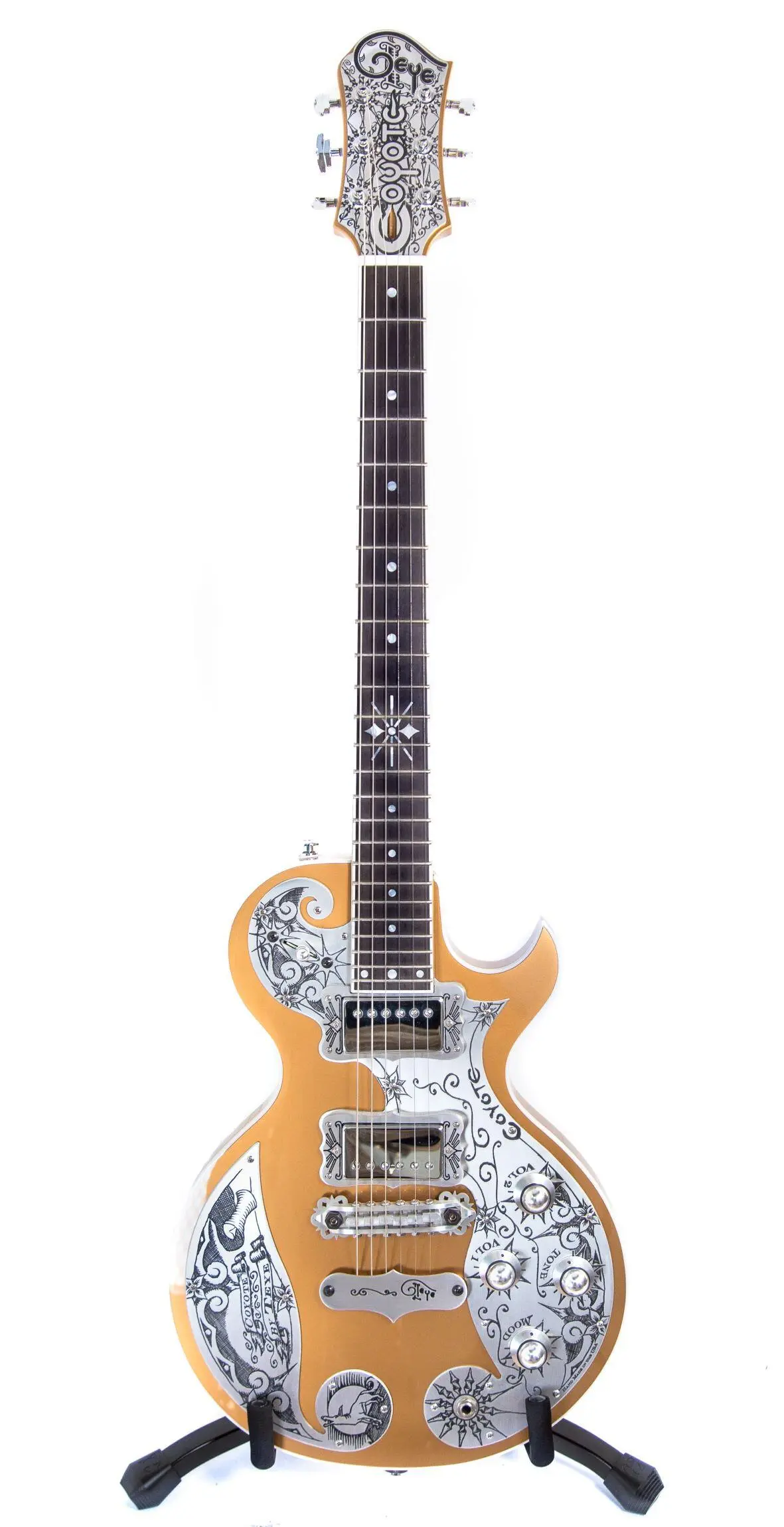 La Coyote est une guitare conçu avec un corps en acajou sélectionné, une table en érable, un manche en acajou et une touche en ébène.