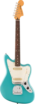 Tout dans le manche est conçu pour une jouabilité rapide et fluide, du profil moderne en "C" à la finition soyeuse en uréthane satiné à l'arrière, en passant par le radius confortable de 9,5" en palissandre avec des bords roulés lisses et 22 frettes medium jumbo. Le corps en aulne classique est disponible dans les finitions Fender intemporelles. Les micros Jaguar Single-Coil Alnico V (Bridge) et Alnico II (Neck) de la série Player offrent des aigus cristallins, des médiums musicaux et des graves serrés qui rehaussent n'importe quel genre. Le commutateur à lame 3 voies vous permet de régler facilement tous les paramètres, du carillon du micro manche au mordant du micro chevalet et tous les points intermédiaires, tandis que le chevalet Jaguar à 6 sillets avec trémolo flottant, les sillets Mustang® améliorés et les accordeurs ClassicGear™ garantissent une stabilité d'accord précise pour une flexibilité permettant d'explorer d'infinies possibilités sonores.