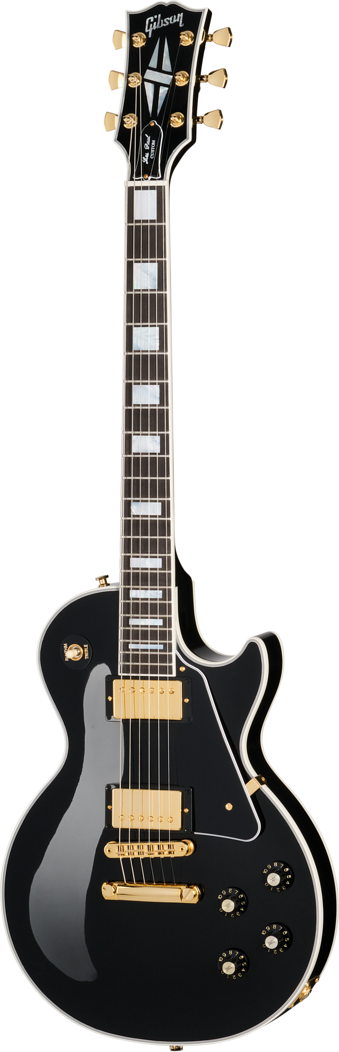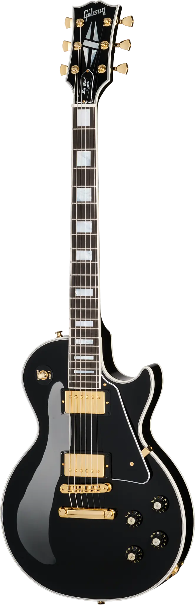 Lancée en 1953 en tant que déclinaison haut de gamme de la Les Paul de base, la Les Paul Custom a été créée à la demande de Les Paul lui-même, qui souhaitait une version noire du modèle « évoquant l’élégance d’un smoking ».