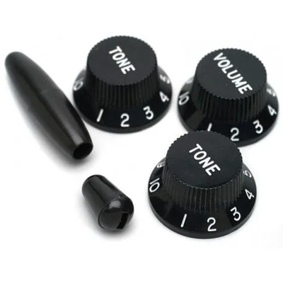 Ce set comprend les éléments suivants : 1 potentiomètre de volume (1V) 2 potentiomètres de tonalité (2T) 1 sélecteur de micros (Switch) 1 embout de sélecteur (Tip) La couleur noire donne à la guitare un look élégant et moderne, tout en étant suffisamment polyvalente pour s'adapter à divers styles de guitare. Ce set est idéal pour remplacer les pièces d'origine ou personnaliser votre Stratocaster, en offrant à la fois une fonctionnalité optimale et un style épuré.