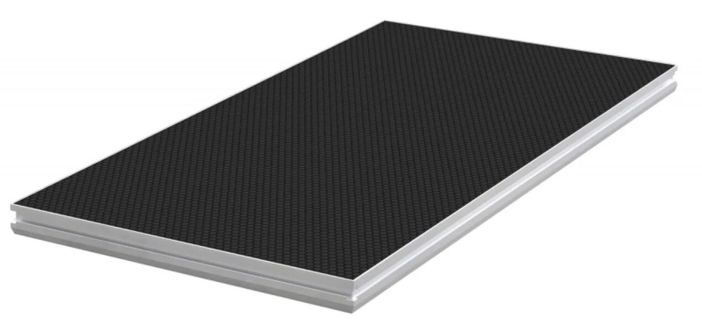 Praticable de 2 mètres par 1 mètre antidérapant compatible avec 3 types de pieds.