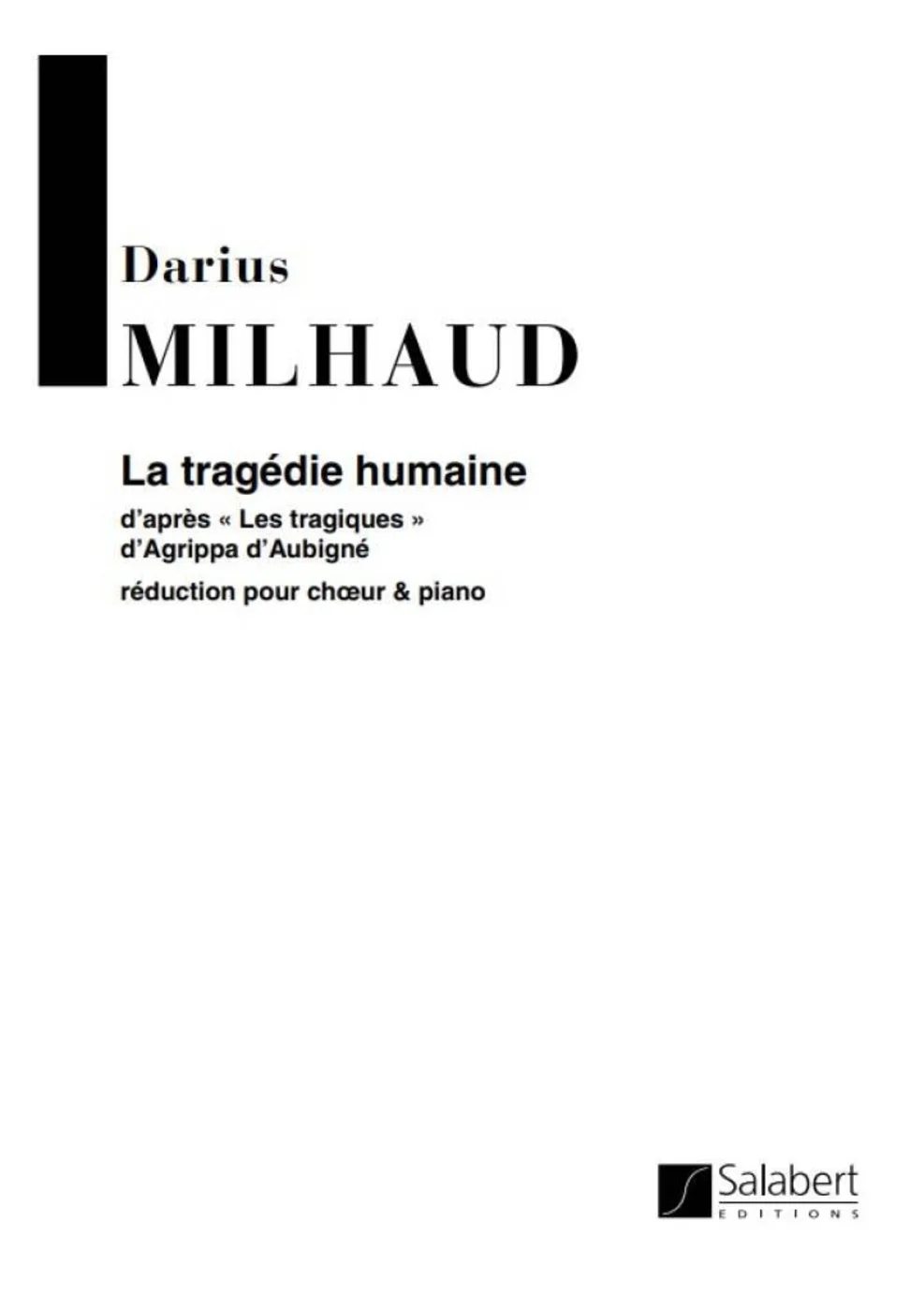 Editions La tragédie humaine - d'après Les Tragiques d'Agrippa d'Aubigné (réduction piano)