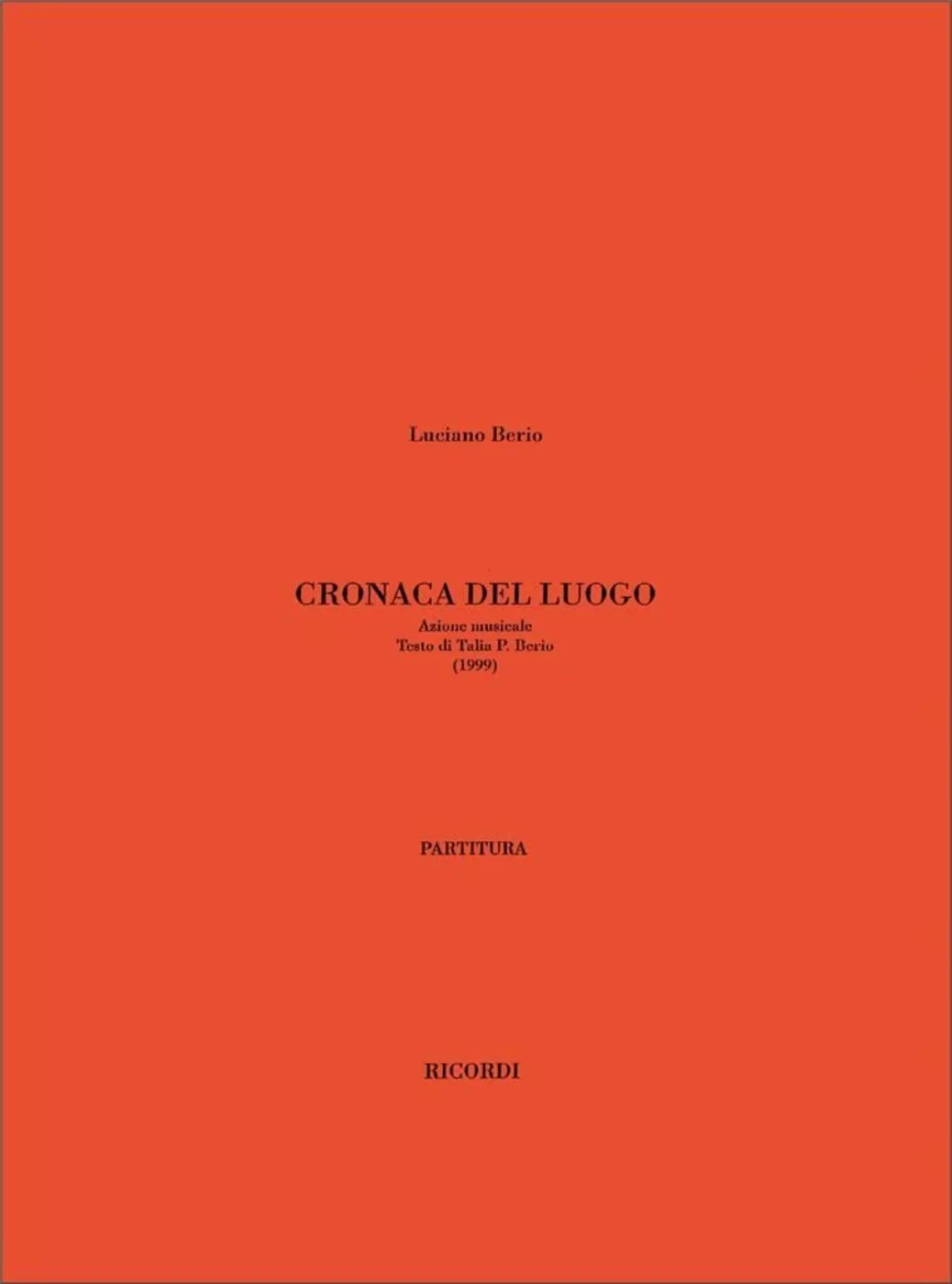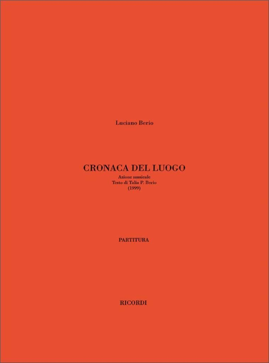 | Titre : | Cronaca Del Luogo. Azione Musicale |