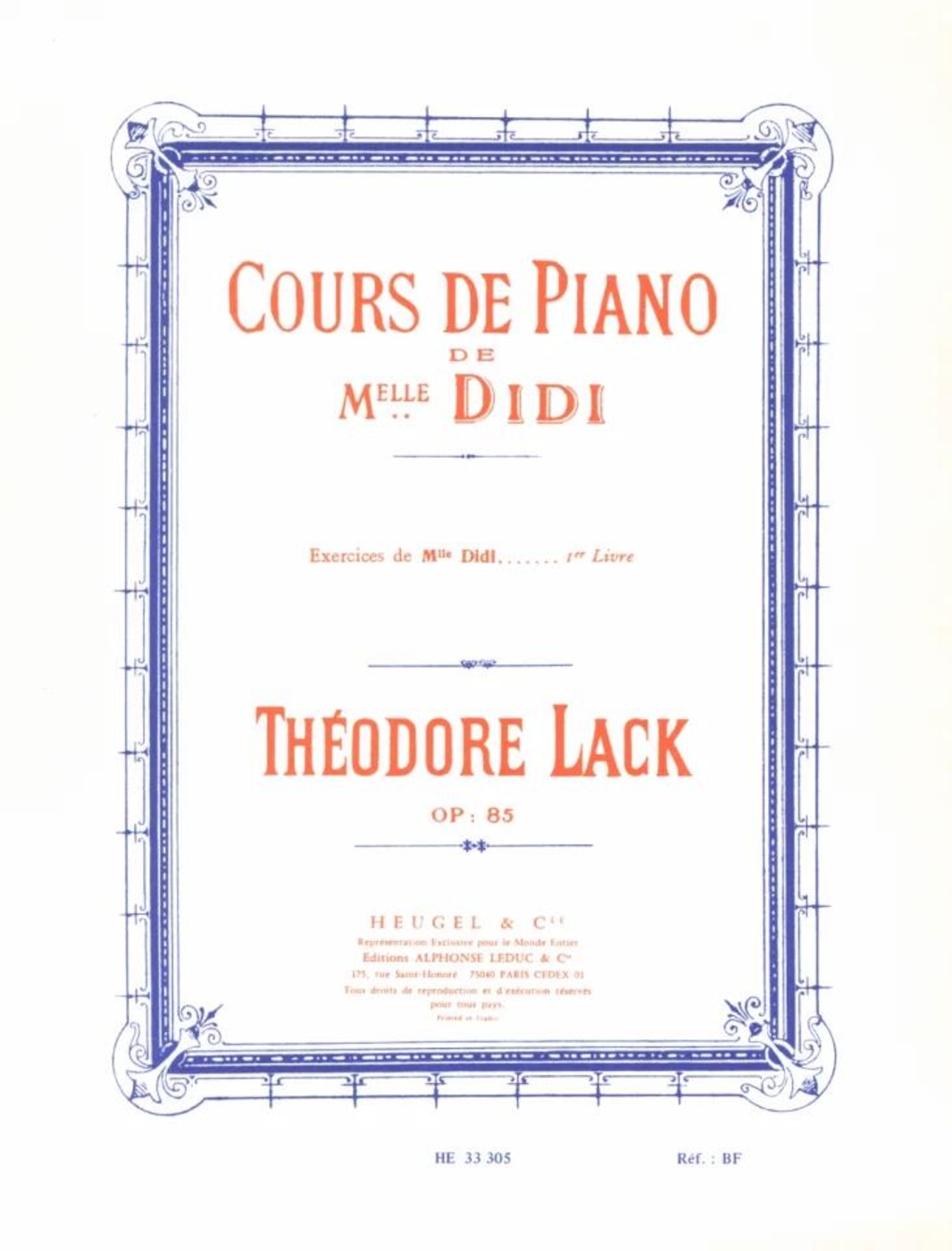 Cours de Piano etudes de Melle Didi op. 85 Vol. 1 Théodore Lack Klavier French
