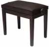 Très bon rapport qualité prix pour cette banquette en noyer avec un dessus en skai marron conçue spécialement pour les pianistes.