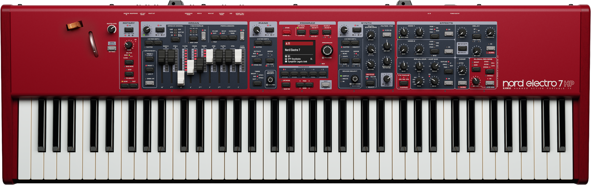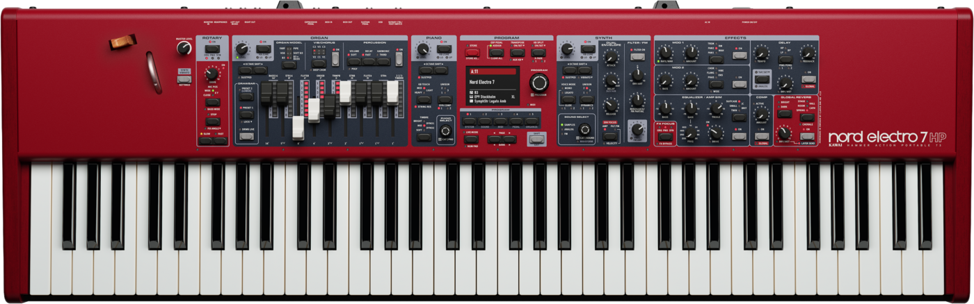 Le Nord Electro 7 HP hisse la série Electro au sommet grâce à une nouvelle section synthétiseur puissante, des effets dédiés par section et un panneau de commande raffiné doté d'un écran couleur haute résolution.