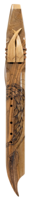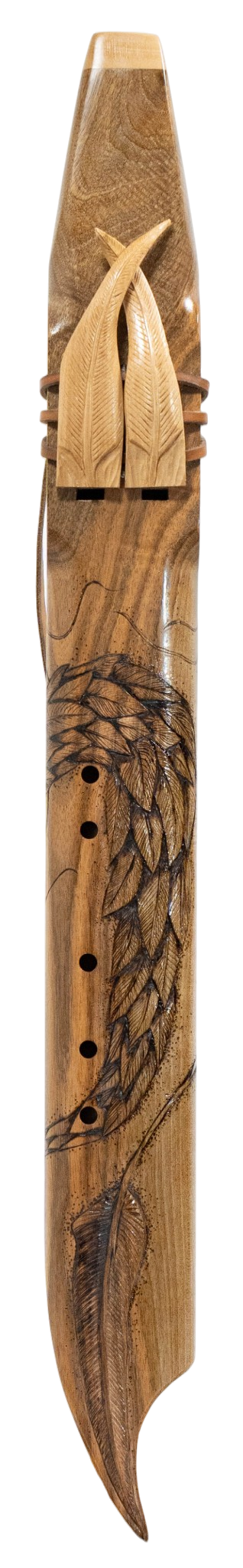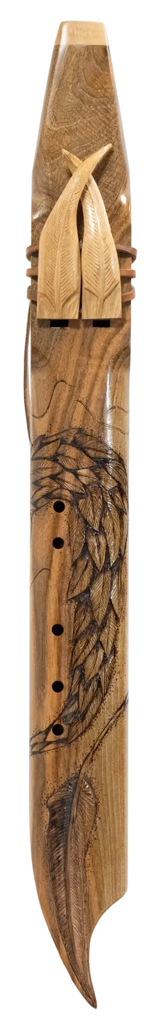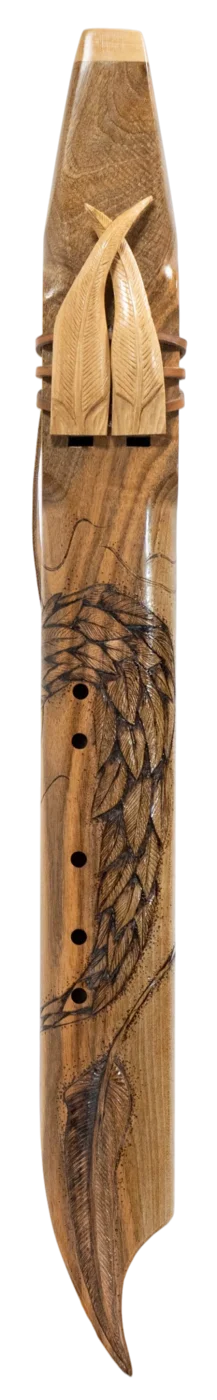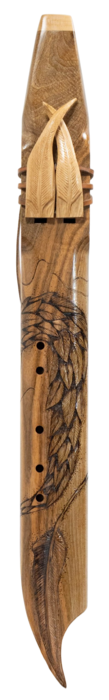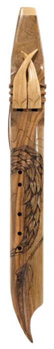 Flûte Cherokee Double ''Chef d'oeuvre Serpent à plumes'' en FA, Corps en Noyer et Totem en érable blanc