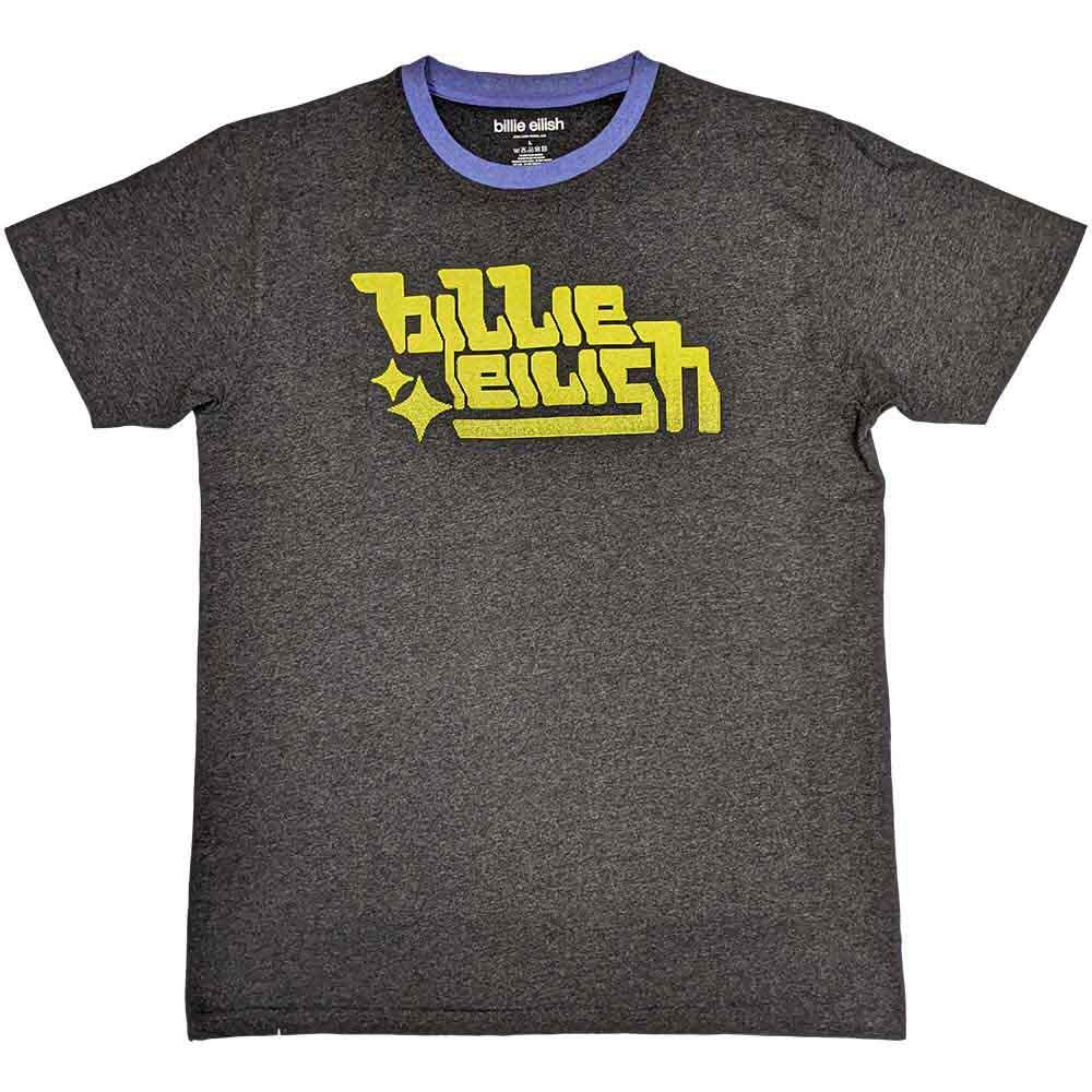 T-shirt Billie Eilish Unisex Ringer T-Shirt: Neon Green Logo (Charcoal Grey) Taille XXL
